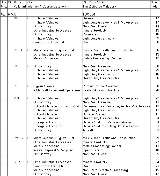Pima County, Arizona, give the percentage contributions from specific air pollution sources. The Pima County Seat is Tucson, Arizona. |