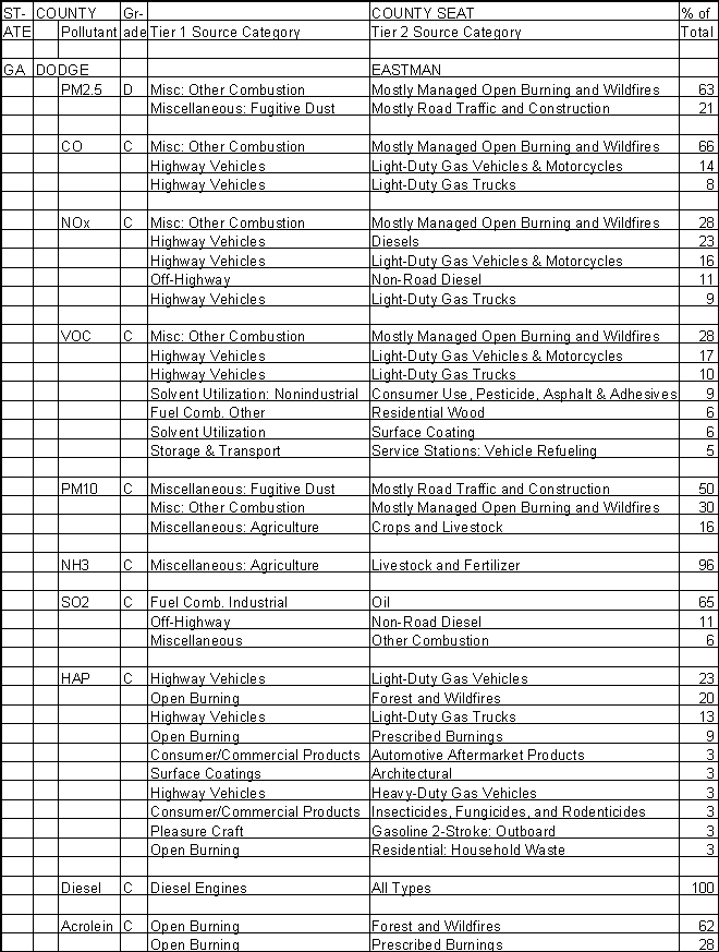 Dodge County, Georgia, give the percentage contributions from specific air pollution sources. The Dodge County Seat is Eastman, Georgia. |