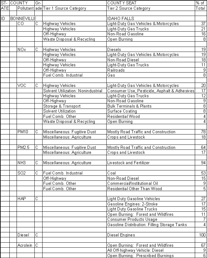 Bonneville County, Idaho, give the percentage contributions from specific air pollution sources. The Bonneville County Seat is Idaho Falls, Idaho. |