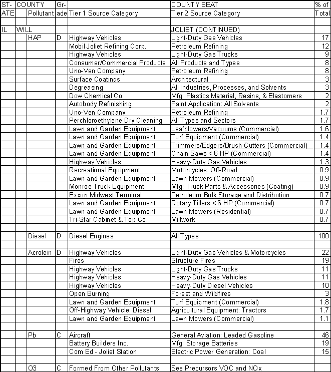 Will County, Illinois, give the percentage contributions from specific air pollution sources. The Will County Seat is Joliet, Illinois. |