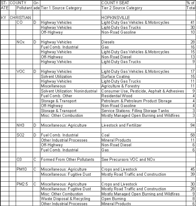 Christian County, Kentucky, give the percentage contributions from specific air pollution sources. The Christian County Seat is Hopkinsville, Kentucky. |