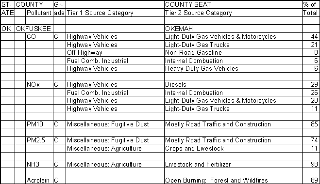 Okfuskee County, Oklahoma, give the percentage contributions from specific air pollution sources. The Okfuskee County Seat is Okemah, Oklahoma. |